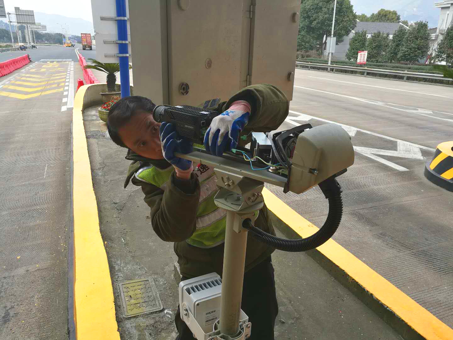圖為廠家人員在調試設備 公司路段人工車道車牌抓拍識別系統已于去年全部更新換代,而ETC車道因當時還尚能滿足收費條件沒有更換。但隨著收費系統不斷升級,當切換人工收費,要求錄入全部車牌時不僅效率低,而且容易出錯,嚴重影響了收費操作速度。 公司工程養護部機電設備維養中心發現這一問題后,立刻聯系了車牌抓拍設備廠家,并在設備到位當天,中心隊員就著手安裝和接線工作,方便廠家人員后續調試,以便盡快啟用自動車牌抓拍系統。因調試過程涉及到與軟件方配合,中心隊員便一起協助廠家溝通聯系,加班加點已成常態。經過雙方近十天努力,一套集車牌抓拍、高清視頻于一體的監控設備佇立在車道安全島上。 自動車牌抓拍系統的成功安裝,不僅提升了收費操作速度,還可以隨時掌握每輛車經過的點位及高清圖片,減少車輛違法行為,在打擊車輛偷逃通行費等方面也將起到積極作用。 項寅曉