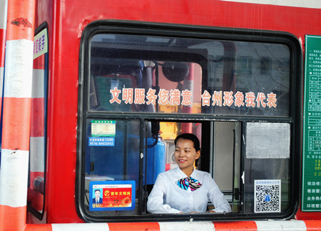 在今年集團9月份舉行的收費業務知識比武中,母親施菊清以92分比89分,高出女兒3分的成績,先勝一局。這位在收費一線工作了12年的老員工,從臺州南到溫嶺西再到臺州收費所,工作過三個收費站,接觸過形形色色的司乘人員,遇到過更多的特情處理,收費業務知識顯然比女兒豐富(臺州收費所的同事習慣地尊稱她為施老師)。但對于這次的文明服務大比武,施菊清顯得有點不自信,尤其在微笑的表現上,總覺得自己力不從心,感覺一笑起來眼角的皺紋會影響比賽成績。 施老師今年49歲,明年已到退休的年齡,但在工作中她會忘掉年齡,一直以年輕人的標準要求自己,每月文明服務標兵評選中,總能時不時地看到她榜上有名。她這種上進的工作作風給女兒林夢灑做了很好的榜樣,憑借充滿活力的工作作風,以及姣好的面容,活潑親和的服務態度,林夢灑每個月的文服服務評分也都名列前茅。
