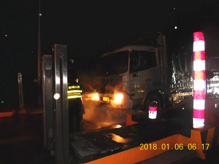 1月6日,一輛車牌為J52286的貨車著火,在收費(fèi)員楊丹妮的應(yīng)急救援下,成功控制住了火勢(shì),沒有造成重大損失。 當(dāng)天凌晨6:18,天還未亮,溫嶺西收費(fèi)所還沉浸在一片安靜中,突然,收費(fèi)車道上傳來一陣急剎車的聲音,收費(fèi)員紛紛從倦意中驚醒。一輛車牌為浙J52286的貨車停在了收費(fèi)車道上,駕駛員從駕駛室直接跳下車跑到收費(fèi)窗口,急促地喊道:“有滅火器嗎?有滅火器嗎?車子著火了。”