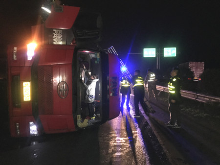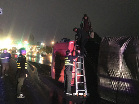驚險(xiǎn)!半掛車側(cè)翻內(nèi)廣場(chǎng) |