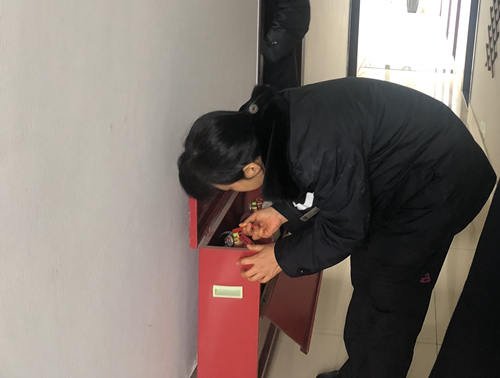 圖為檢查組檢查消防器材 在這之前,溫嶺西收費所排除了一起日常生活中出現(xiàn)的安全隱患。收費二班班長陳軍路過自動伸縮門時,發(fā)現(xiàn)該門不銹鋼骨架有一節(jié)彎折脫落的現(xiàn)象。若不及時修理,開門時極容易造成電機損壞。于是他立即把情況反應給所領導,考慮到半夜所里仍有車輛進出,他又馬上聯(lián)系安全員林葉輝,監(jiān)控員陳丹軍找來工具和鐵絲,三人齊心協(xié)力把脫落的骨架進行了復位鞏固,消除了安全隱患。
