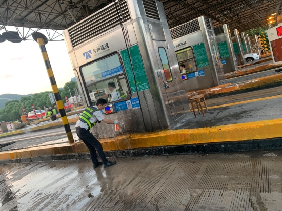 圖為工作人員打掃車道衛(wèi)生 此次環(huán)境衛(wèi)生大掃除本著徹底清理、不留死角的原則,以班組為單位,細分責任區(qū),明確保潔要求,限時清理,全所員工充分發(fā)揚不怕苦、不怕累的精神,重點對收費站內(nèi)外廣場、車道、崗亭、島頭、邊溝、標志標牌等區(qū)域及設施設備進行了一次深度清潔。