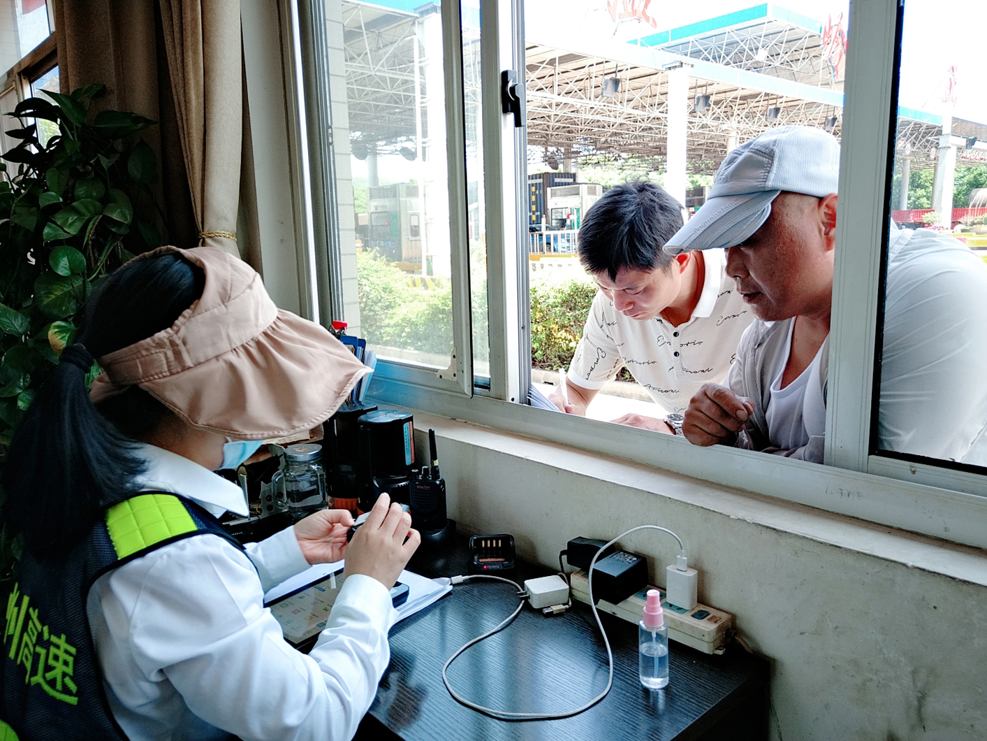 圖為ETC服務點人員幫司機解決ETC車輛問題