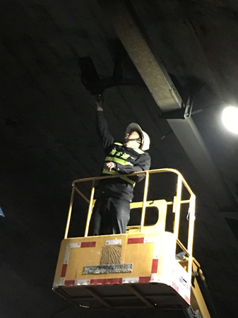 圖為黃土嶺執勤隊員在清潔燈具和攝像鏡頭