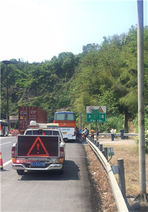 見狀,巡邏車馬上開啟預(yù)警模式,指揮大客車緩慢駛?cè)氡睆V場。隊(duì)長李新波詢問原因得知,浙J**123是椒江開往楠溪江的旅游包車,途中發(fā)動機(jī)故障,失去動力,車子開不了,現(xiàn)正在聯(lián)系公司,讓公司派車。但車子停在應(yīng)急車道,行人肆意穿越隔離帶很危險(xiǎn),高速公路車多速度快,隨時可能發(fā)生意外。對此,執(zhí)勤隊(duì)員當(dāng)即帶領(lǐng)乘客轉(zhuǎn)移安全地帶等待,告知他們在高速公路上不得隨意穿行。