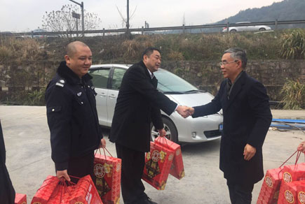 圖為公司董事長謝文君在一線慰問 每到一所,謝文君都向在崗亭內(nèi)收費和監(jiān)控室內(nèi)的員工送上新春祝福,道聲:“辛苦了!”詢問值班安排,了解車流量情況。當?shù)弥斕燔嚵髁刻貏e大時,謝文君要求各收費所即使是小型客車免費時間,也要合理安排上崗員工休息、吃飯時間,增強收費力量,加強各所間交流,及時掌握車流量變化,維護好通行秩序,確保安全暢通。要求各隧道所加強監(jiān)控,時刻關注隧道內(nèi)車流變化,及時提醒過往司機減速慢行通過隧道,確保過往司乘人員過個祥和平安的春節(jié)。 此外,謝文君還到食堂、宿舍查看員工在節(jié)日期間的飲食和住宿情況。了解在崗員工個個精神飽滿、熱情洋溢,謝文君感到欣慰,鼓勵大家繼續(xù)努力,提供優(yōu)質(zhì)的文明服務,樹好公司形象。