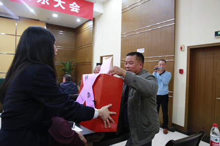 圖為總監(jiān)票人項(xiàng)義超在宣讀投票表決結(jié)果
