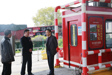 圖為公司總經(jīng)理張建平檢查臺州南收費(fèi)所