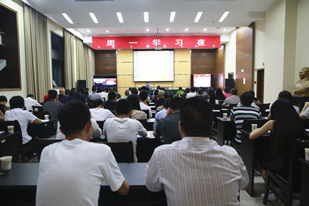 圖為公司黨委委員、副總經(jīng)理陳保衛(wèi)主持活動 本次學(xué)習(xí)夜活動以“兩學(xué)一做”學(xué)習(xí)教育常態(tài)化制度化為主題,邀請市直機(jī)關(guān)工委副書記李欠梅為學(xué)習(xí)人員上此黨課。李欠梅引用“抓好黨建是最大的政績,不抓黨建是最大的失職”這句話作為開場語,借此引起全場人員對黨建工作的重視,隨后圍繞“兩學(xué)一做”學(xué)習(xí)教育常態(tài)化制度化重大意義、基本目標(biāo)要求、開展方式等內(nèi)容,通過穿插事例和小故事展開詳細(xì)講解,為單調(diào)的黨課注入生動因子,確保學(xué)習(xí)夜學(xué)有成效。 學(xué)習(xí)會上,大家還觀看了《省十四次黨代會報告解讀》視頻報道。 公司副總經(jīng)理陳保衛(wèi)主持活動。公司領(lǐng)導(dǎo)干部,大樓、房產(chǎn)集團(tuán)和市政公司共115人坐滿大樓主副會場,全體人員按指定位置入座,兩個會場還分別安裝了視頻會議系統(tǒng),便于全體人員同步學(xué)習(xí)。 陳林偉