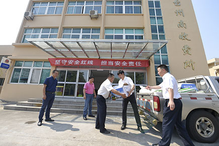 圖為公司副董事長、總經理張建平檢查收費所食堂 “今天車流量多嗎?你們是公司形象的代表,請把最優質的服務提供給他們。”在臺州收費所一號崗亭里,張建平一邊慰問當班收費員,囑咐他們注意安全和休息,一邊鼓勵他們堅持做好文明服務。他還到黃土嶺隧道所、臨海南收費所慰問當班執勤隊員和收費員。此時,各所食堂管理房正處于改造階段,他仔細查看了各所食堂和工作場所,了解大家的飲食和工作環境。