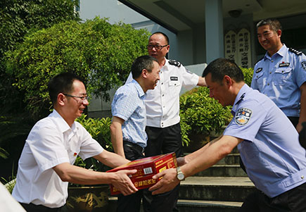 圖為公司副總經理董阿林給高速交警送上消暑品