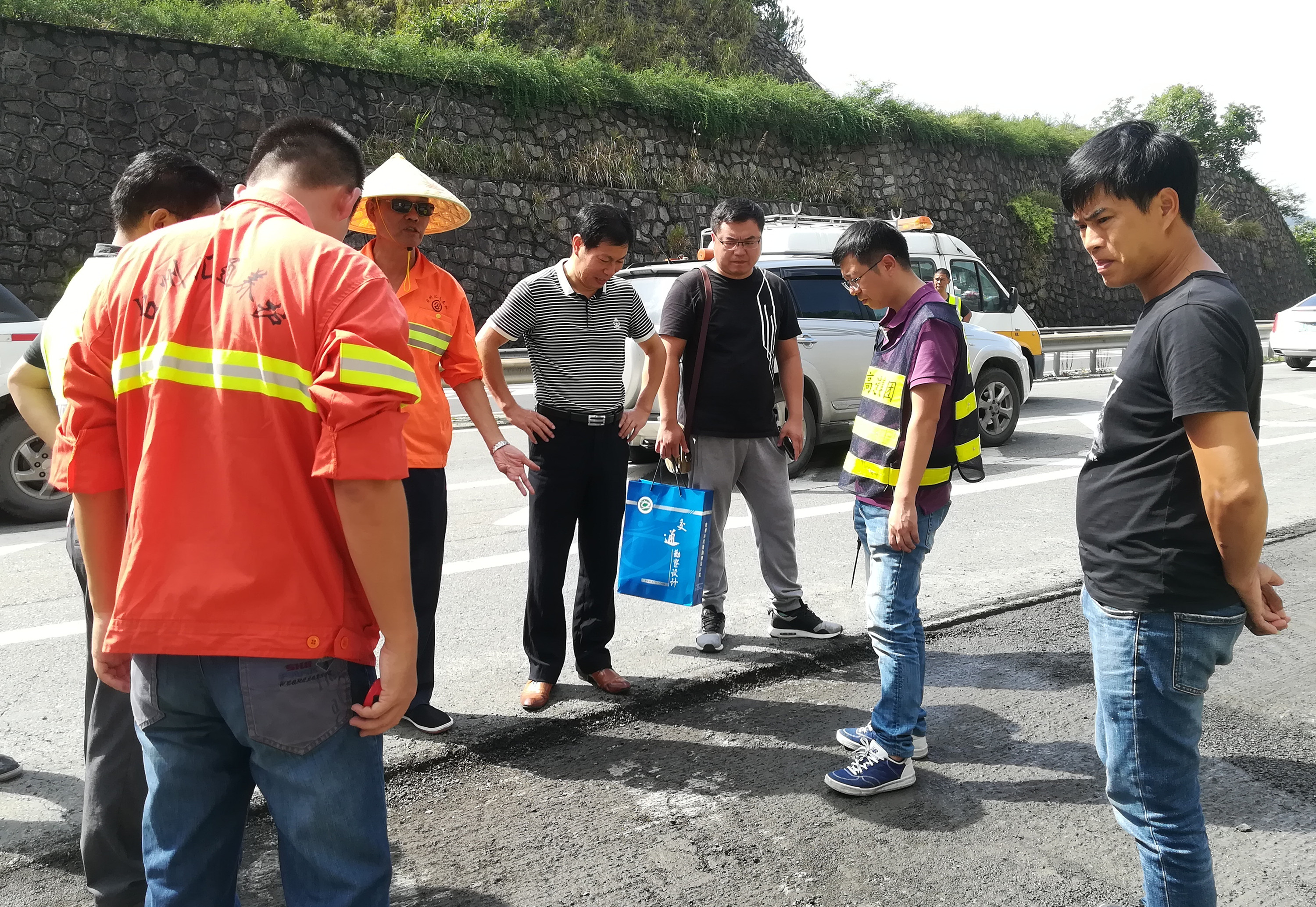 集團總工程師江輝到臨海南匝道現場查看病害 |