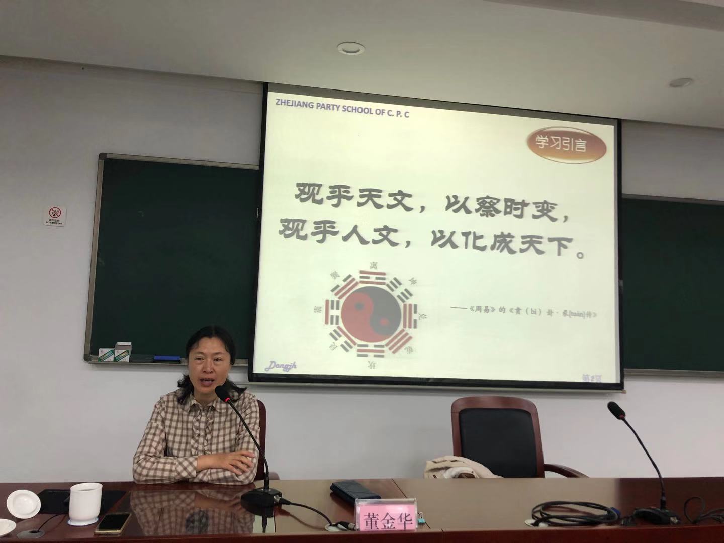 圖為浙江省科技廳教育培訓(xùn)中心副主任戴銀燕以《習(xí)近平科技創(chuàng)新及浙江實(shí)踐》為題授課
