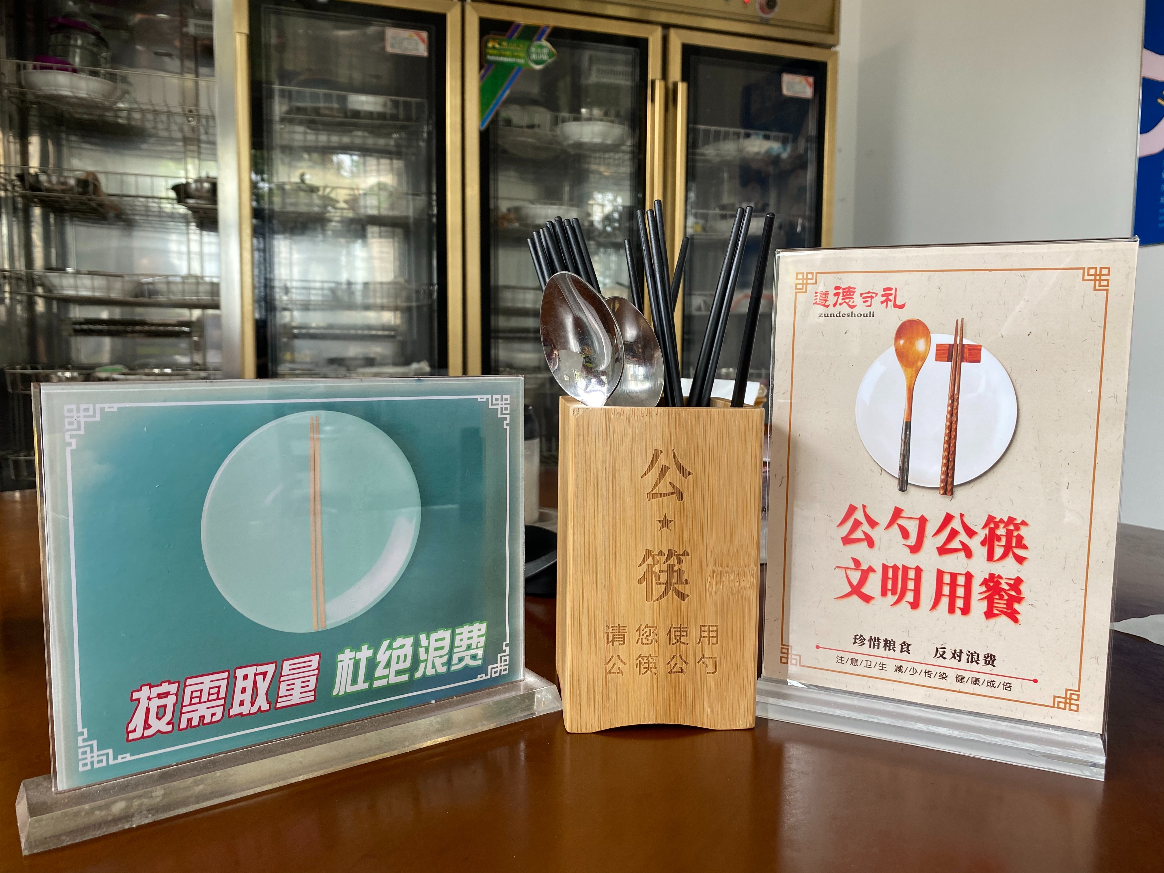 該所通過食堂粘貼宣傳畫、餐桌放置宣傳標牌、設置公用筷子筒等多種方式進行廣泛宣傳,以此提升反對浪費、公筷公勺、文明健康”的活動知曉率,促進全體員工積極參與,引導員工自覺杜絕“舌尖上的浪費”。