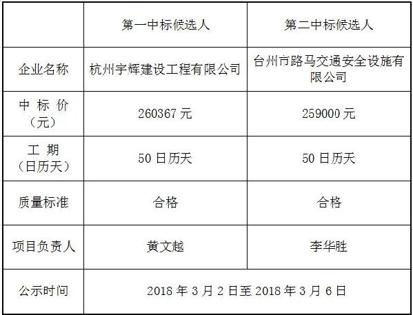 浙江臺(tái)州高速公路集團(tuán)股份有限公司(招標(biāo)人),高埭橋、新高村橋、中心路橋橋下限高桿工程,經(jīng)評(píng)標(biāo)委員會(huì)評(píng)審,結(jié)果公示如下: