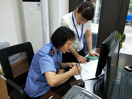 圖為股東到椒江收購點辦理股權(quán)轉(zhuǎn)讓手續(xù)
