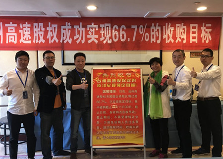 股權收購工作自啟動以來,市委、市政府高度重視,市直各部門和各縣(市、區(qū))政府大力支持,措施得力,領導小組辦公室精準服務,認真落實各項舉措,臺州高速集團精心籌備,宣傳深入有效。