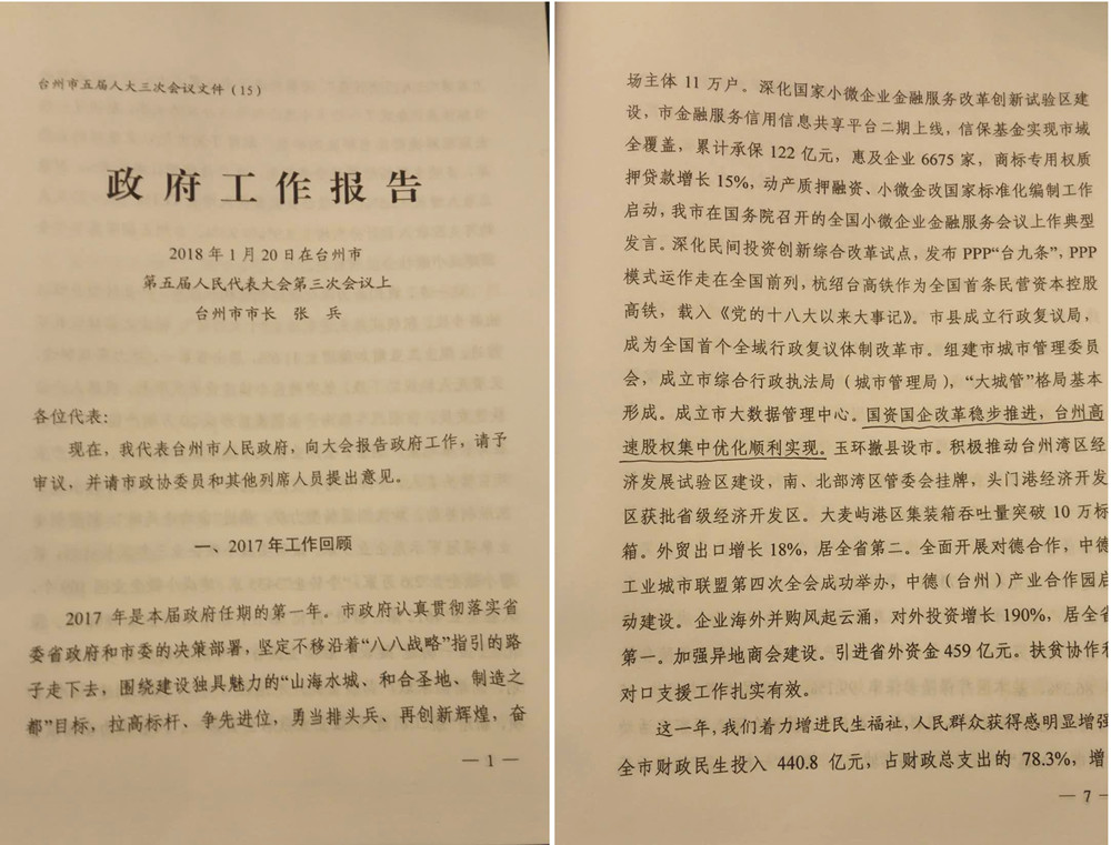 臺州高速股權(quán)集中優(yōu)化寫進(jìn)《政府工作報(bào)告》 |
