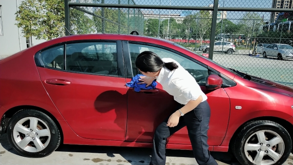溫嶺西支部書記周超帶領(lǐng)黨員服務(wù)群眾 當(dāng)天上午,活動一開始,前來洗車的車輛絡(luò)繹不絕。在支部書記周超的帶領(lǐng)下,五名黨員便開始分工合作。兩名男同志負(fù)責(zé)沖水、上泡沫、擦洗、再沖水,兩名女同志負(fù)責(zé)擦干和吸塵器清掃內(nèi)室,還有一名男同志負(fù)責(zé)開車挪車,需要清洗的車輛一輛接著一輛,黨員同志們顧不得擦干身上的被水濺濕了的衣服,忙得不亦樂乎。看著被洗得一塵不染的車,大家都不約而同地會心一笑。