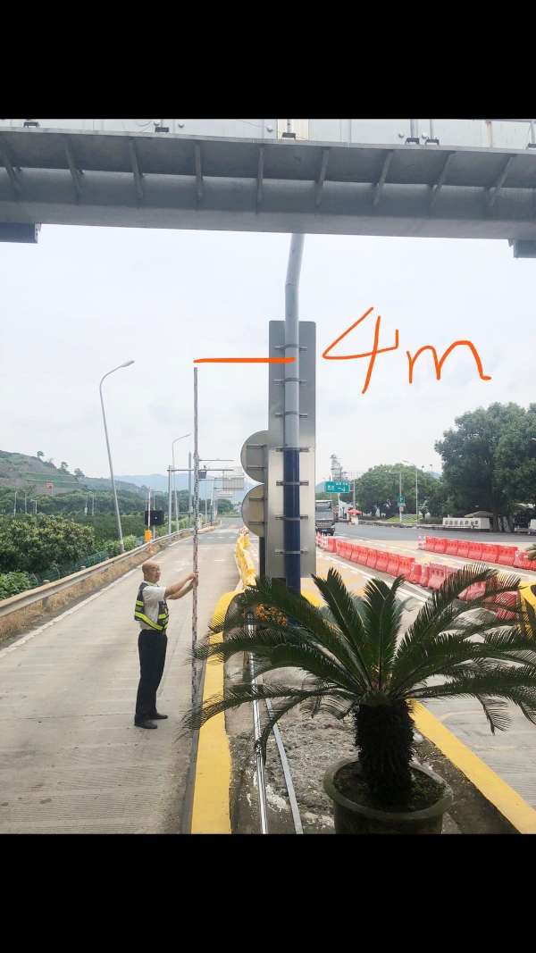 為了方便收費員更加快速檢測不合格的車輛上高速,臨海南收費所三班班長湯明漲與收費員李俊杰,利用空閑時間多次想辦法,最后利用所里購買的5米塔尺,以交通運輸部62號令為準則,在入口車道尋找對標參照物,并拍照制作圖片,發往工作群,以示大家一旦發現違規車輛,能夠更加準確、高效指揮車輛倒出車道調頭離開,不影響后續車輛過檢。 這一舉動極大地方便了收費員有效阻止超高車輛上高速。臨海南收費所在車輛上路方面始終如一嚴守政策,以認真負責的態度,在工作中不斷增強“預防為主、防治結合”的工作意識,為廣大司乘創造一個安全暢通的行車環境。 陳瑩 吳龍婷