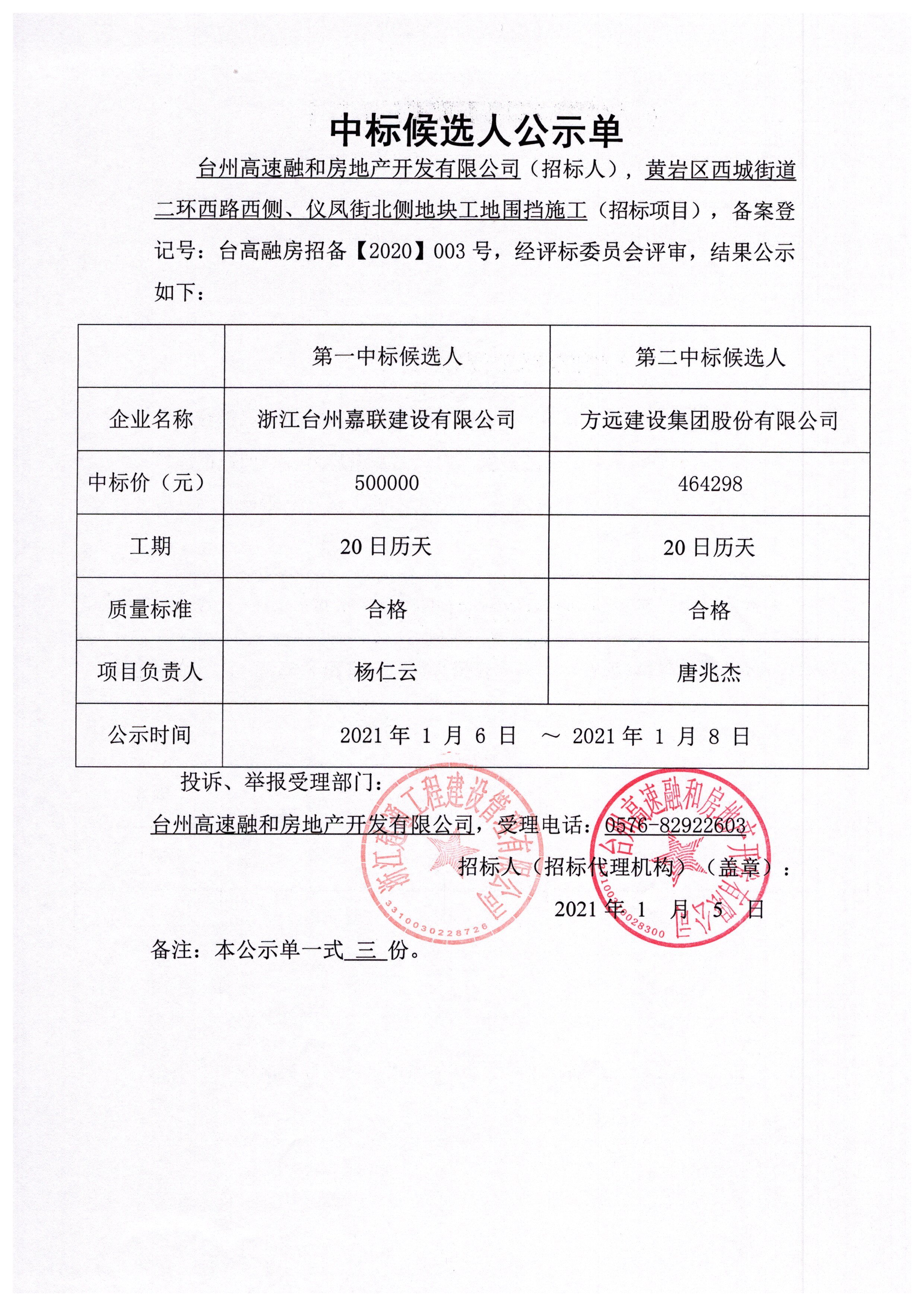 黃巖區(qū)西城街道二環(huán)西路西側(cè)、儀鳳街北側(cè)地塊工地圍擋施工中標(biāo)候選人公示單